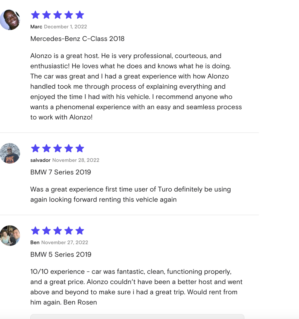 The average Turo host makes around $650/month RENTING their car out on Turo. It's also a GREAT avenue to where you can expand your network, meet new people, and give people the BEST hospitality experience that you can give em'